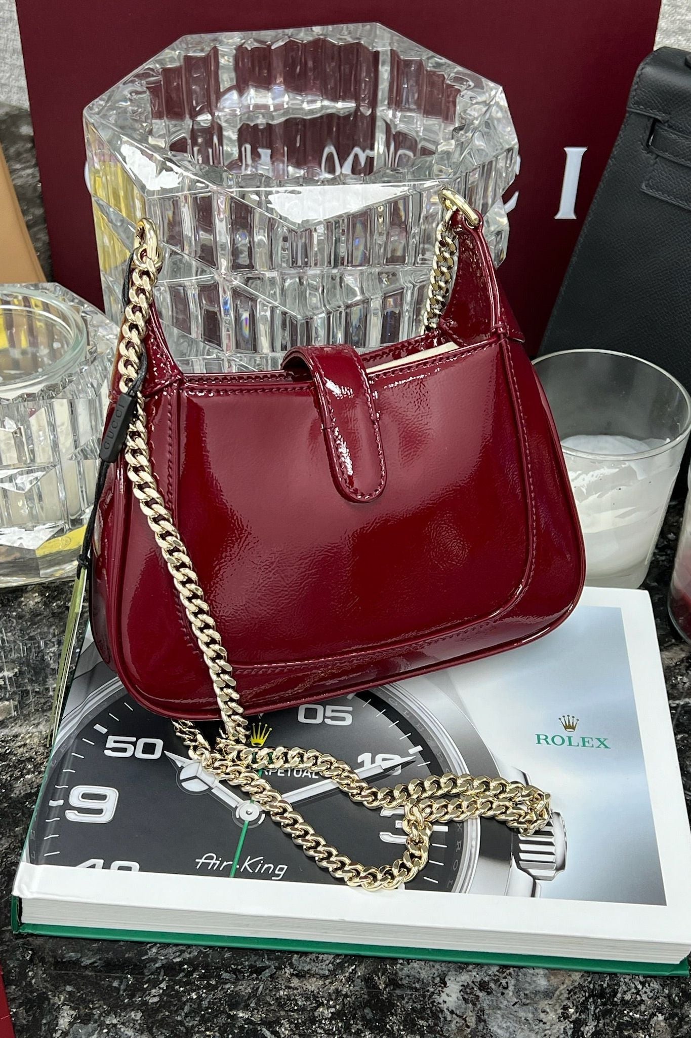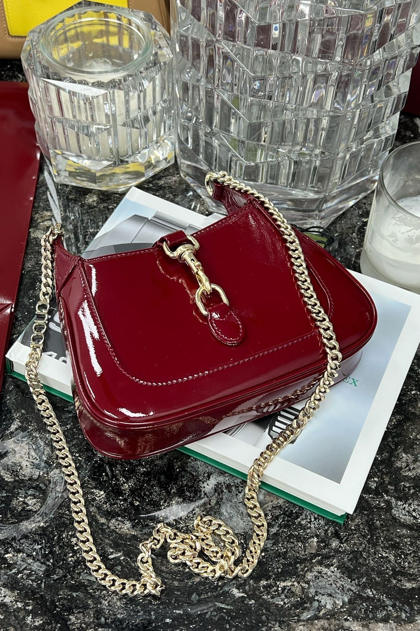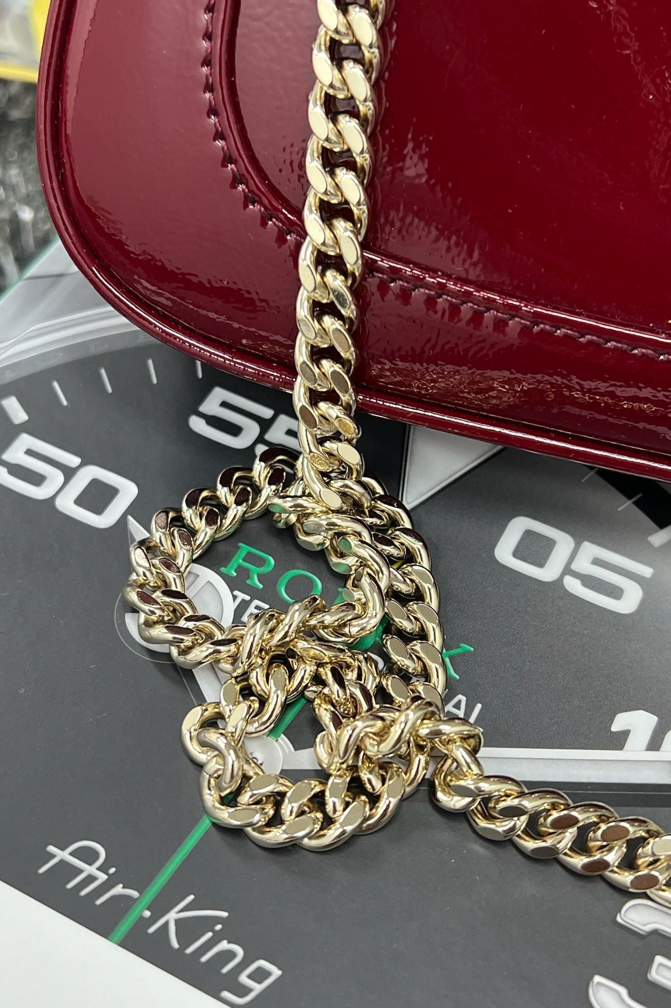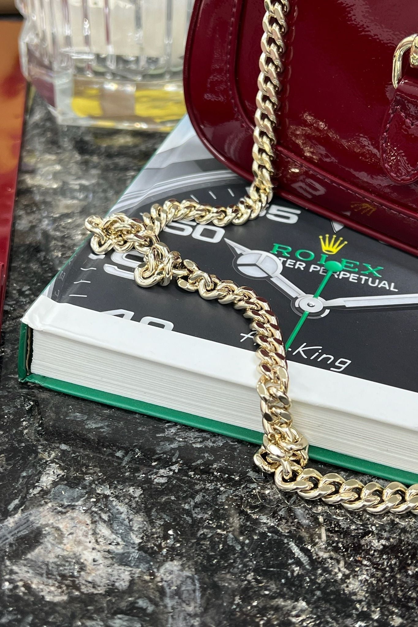 - Chain shoulder strap with each letter attached by hand and 21.3" drop
