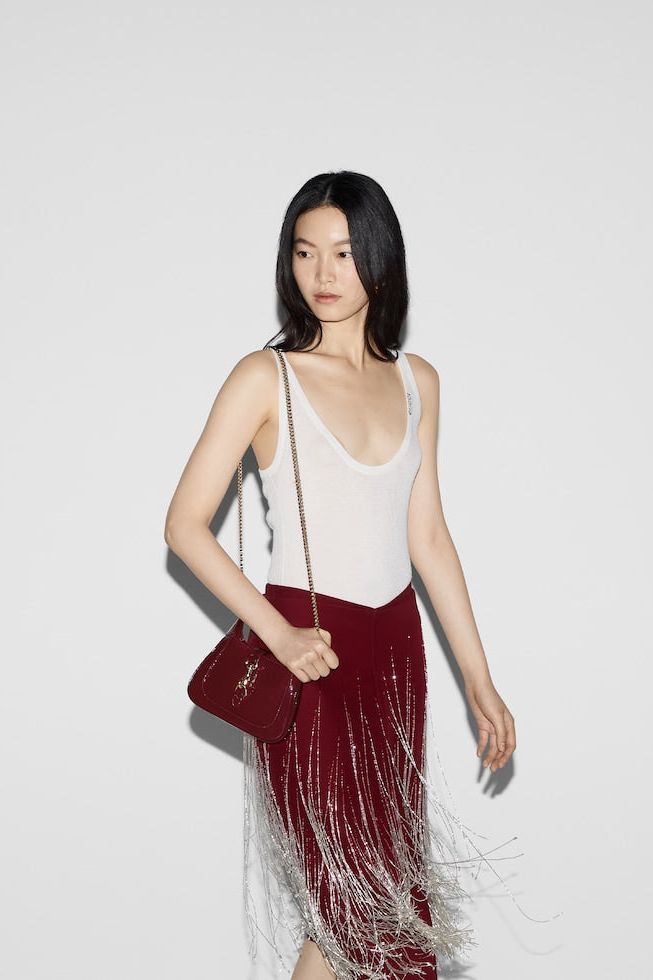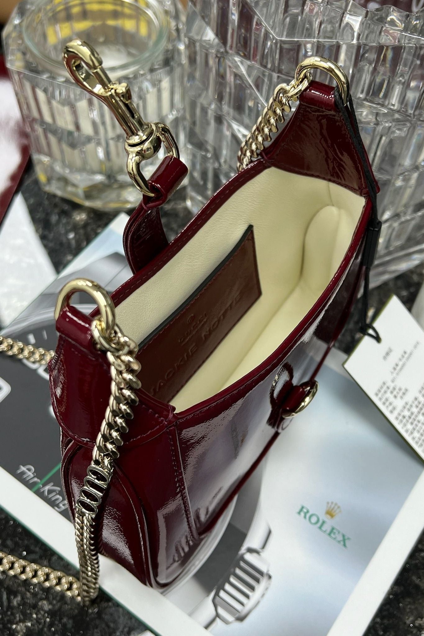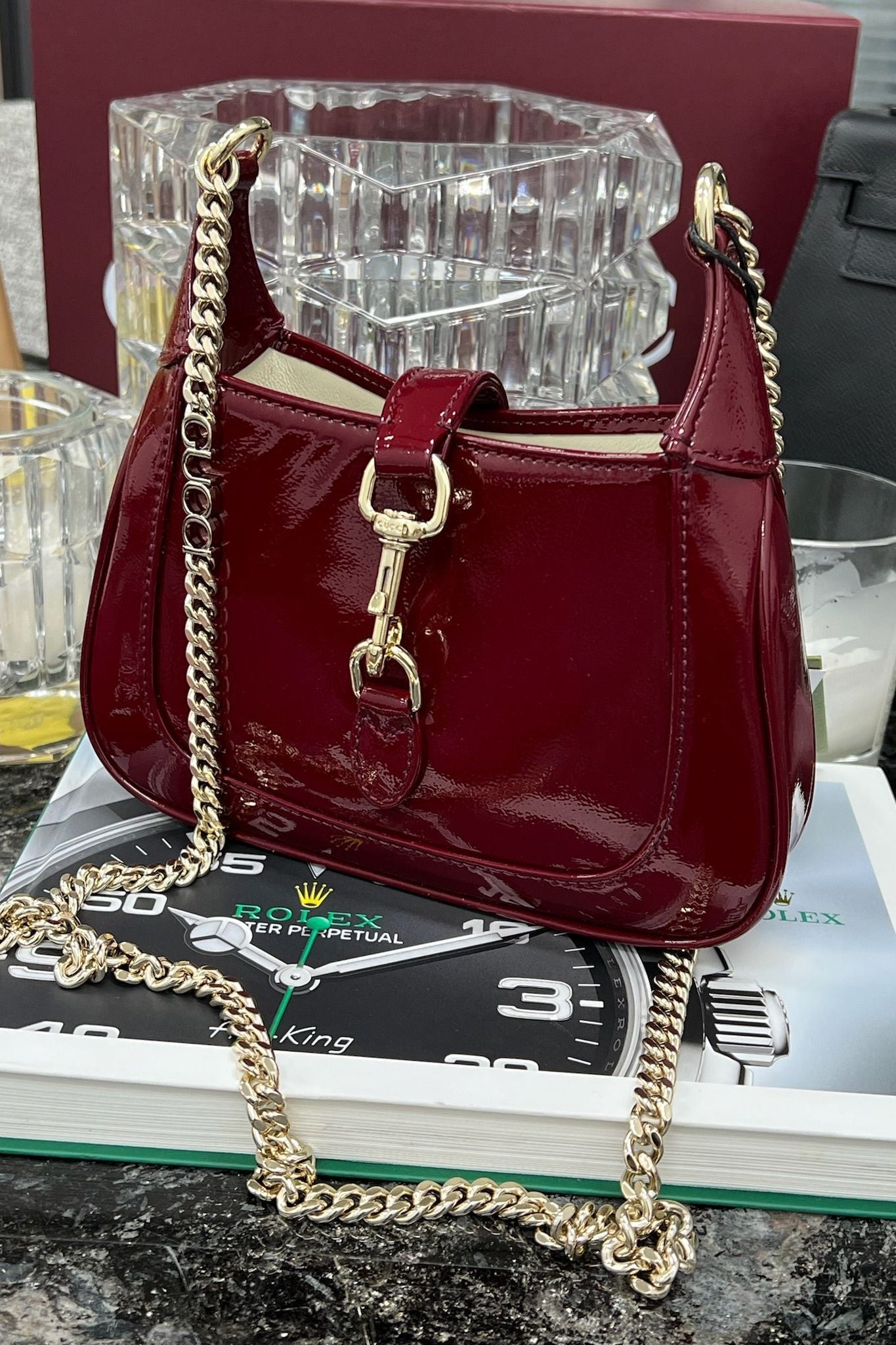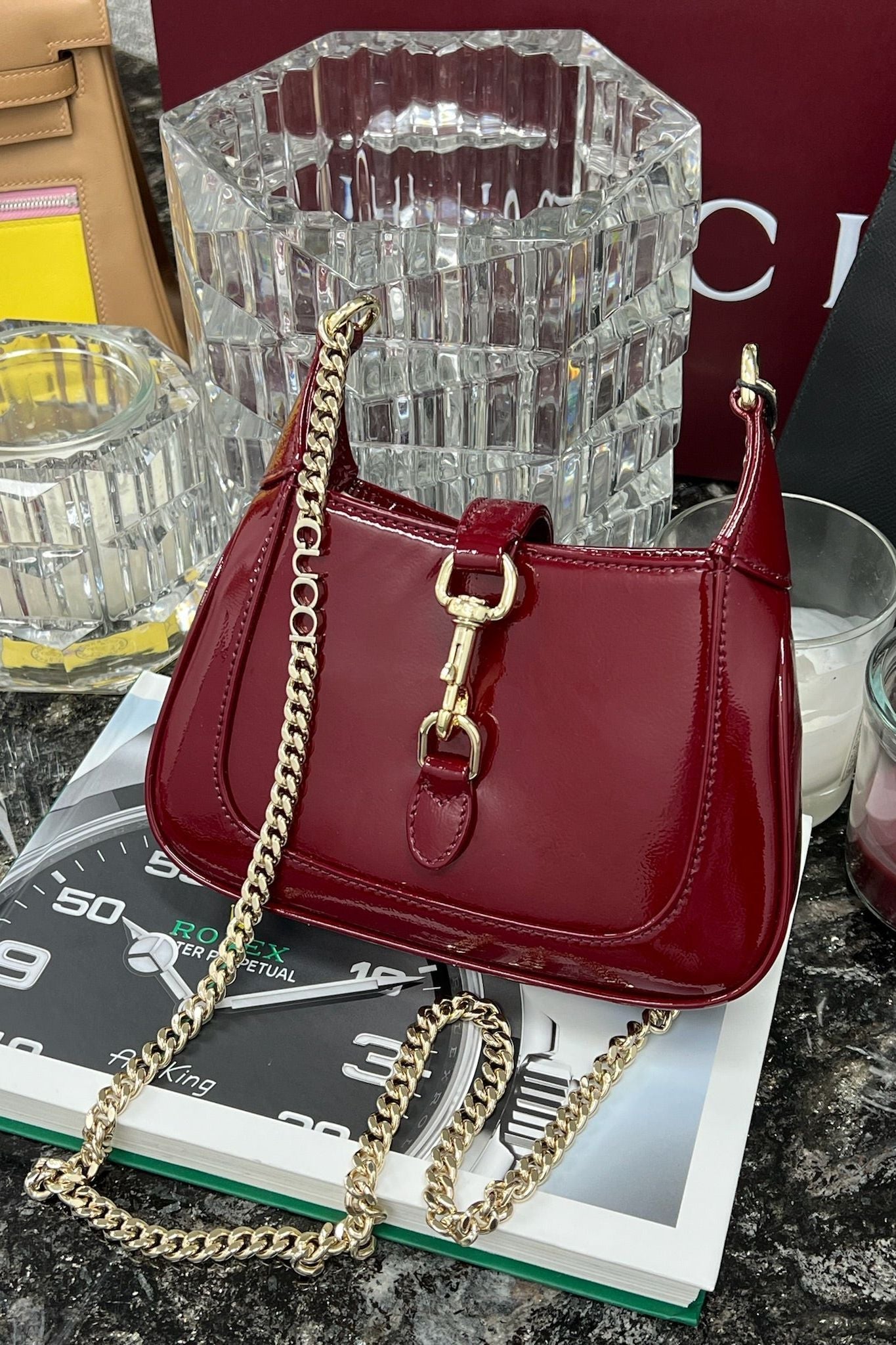 - Chain shoulder strap with each letter attached by hand and 21.3" drop